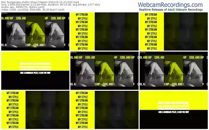 There are a total of 5,814 recordings (3,609 hours) of Taanni from Bongacams available below.