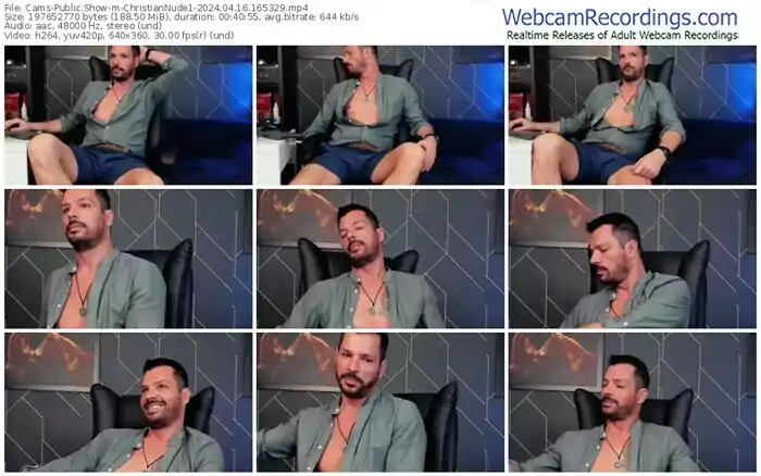 There are a total of 1,476 recordings (809 hours) of ChristianNude1 from Cams available below.