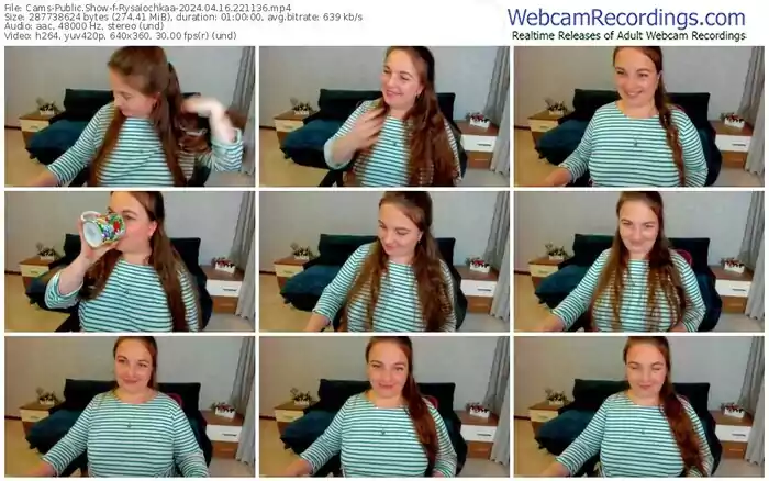 There are a total of 1,474 recordings (839 hours) of Rysalochkaa from Cams and Stripchat available below.