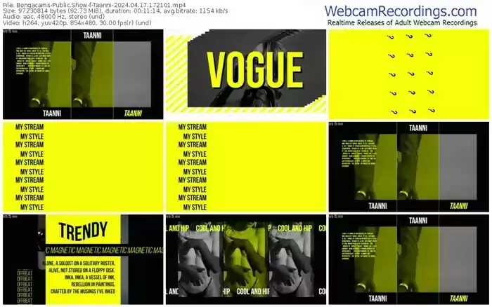 There are a total of 5,814 recordings (3,609 hours) of Taanni from Bongacams available below.