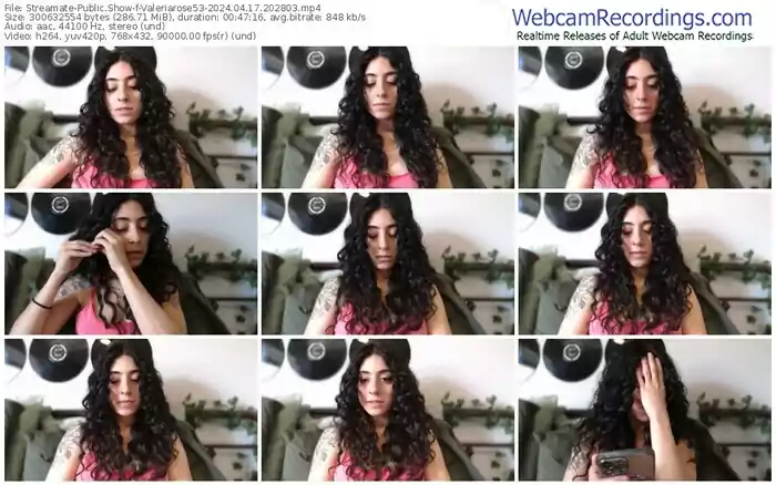 There are a total of 1,330 recordings (443 hours) of Valeriarose53 from Streamate available below.