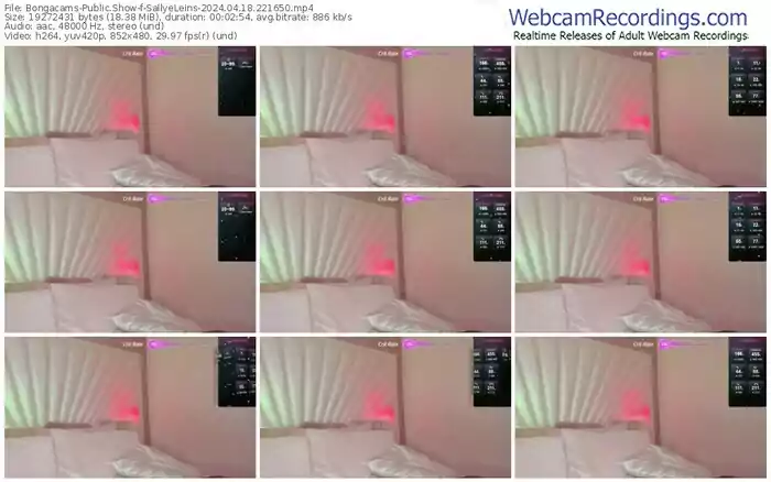 There are a total of 4,255 recordings (2,495 hours) of SallyeLeins from Bongacams available below.