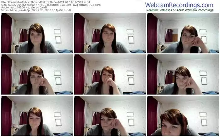 There are a total of 41 recordings (13 hours) of ElektraShine from Streamate available below.