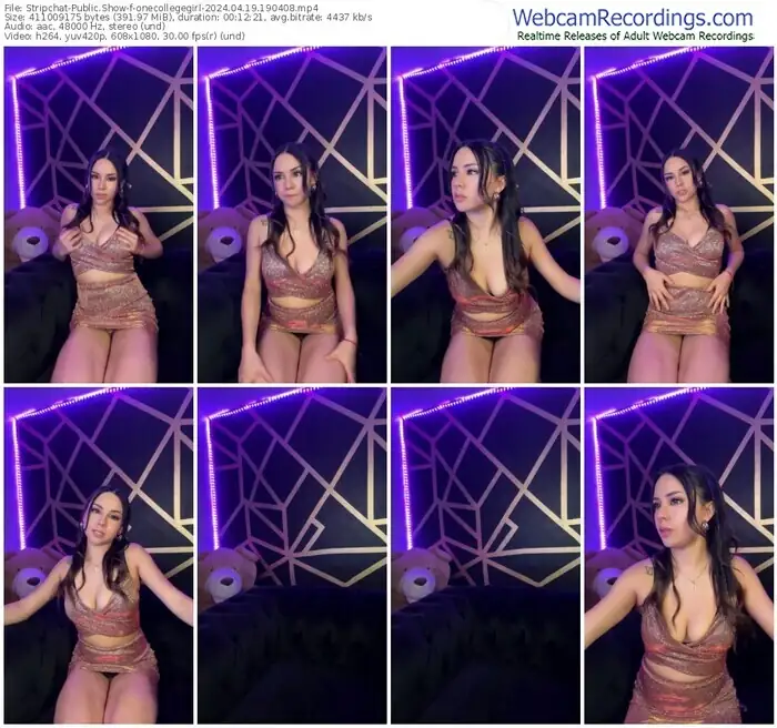 There are a total of 8 recordings (3 hours) of onecollegegirl from Stripchat available below.