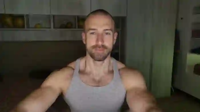His birthday is June 30th 1992 making him 33 years old, and the average age of models on Flirt4Free is 25—making him one of the older models. His height is 187cm, and his weight is 89kg. He identifies his ethnicity as caucasian. He has a trimmed pubic hair, muscular body with blue eyes and short brown hair.