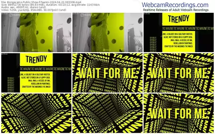 There are a total of 5,814 recordings (3,609 hours) of Taanni from Bongacams available below.