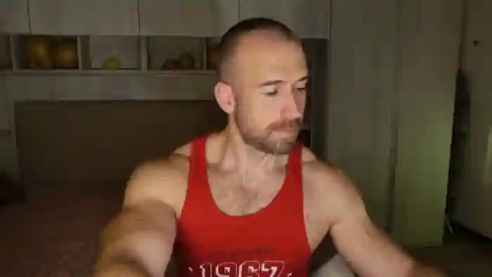 His birthday is June 30th 1992 making him 33 years old, and the average age of models on Flirt4Free is 25—making him one of the older models. His height is 187cm, and his weight is 89kg. He identifies his ethnicity as caucasian. He has a trimmed pubic hair, muscular body with blue eyes and short brown hair.