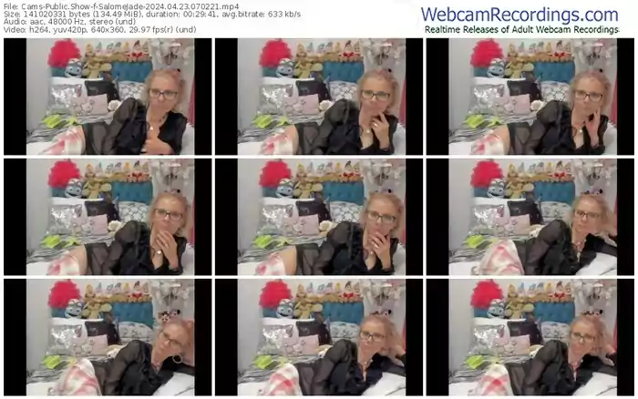 There are a total of 1,217 recordings (725 hours) of SalomeJade from Cams available below.