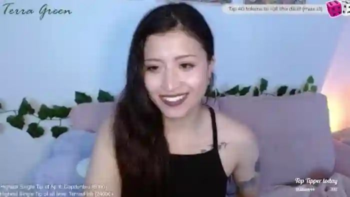TerraGreen is a female webcam model from MyFreeCams.