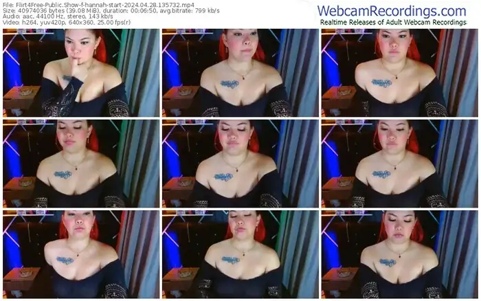 There are a total of 78 recordings (43 hours) of hannah-start from Flirt4Free available below.