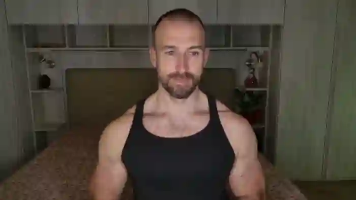 His birthday is June 30th 1992 making him 33 years old, and the average age of models on Flirt4Free is 25—making him one of the older models. His height is 187cm, and his weight is 89kg. He identifies his ethnicity as caucasian. He has a trimmed pubic hair, muscular body with blue eyes and short brown hair.