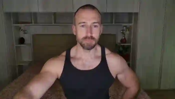 His birthday is June 30th 1992 making him 33 years old, and the average age of models on Flirt4Free is 25—making him one of the older models. His height is 187cm, and his weight is 89kg. He identifies his ethnicity as caucasian. He has a trimmed pubic hair, muscular body with blue eyes and short brown hair.