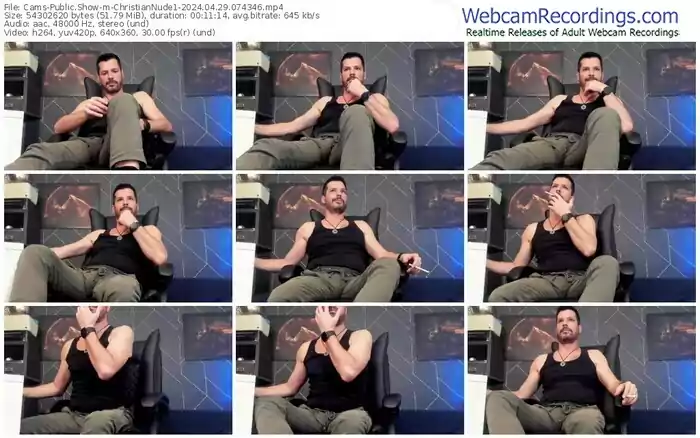 There are a total of 1,476 recordings (809 hours) of ChristianNude1 from Cams available below.