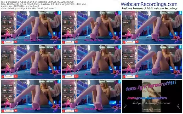 There are a total of 316 recordings (189 hours) of krisssssska from Bongacams available below.