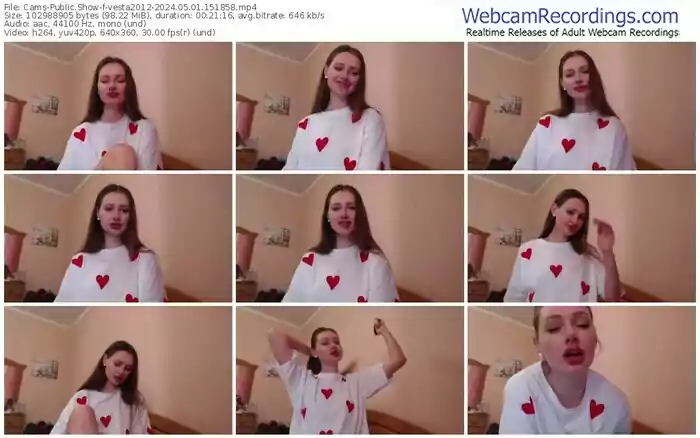 There are a total of 1,135 recordings (424 hours) of vesta2012 from Cams available below.