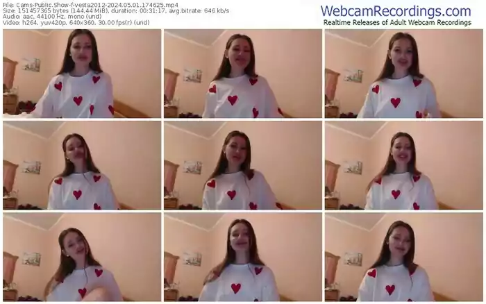 There are a total of 1,135 recordings (424 hours) of vesta2012 from Cams available below.