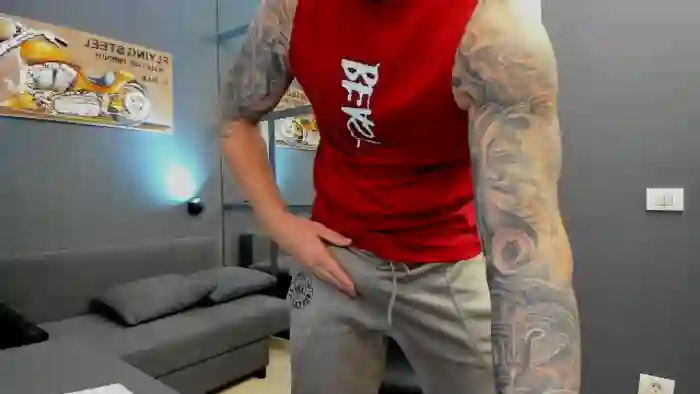 His birthday is July 2nd 1984 making him 41 years old, and the average age of models on Flirt4Free is 25—making him one of the older models. His height is 185cm, and his weight is 94kg. He identifies his ethnicity as caucasian. He has a shaved pubic hair, muscular body with blue eyes and short brown hair.His body art includes piercings, tattoo(s).