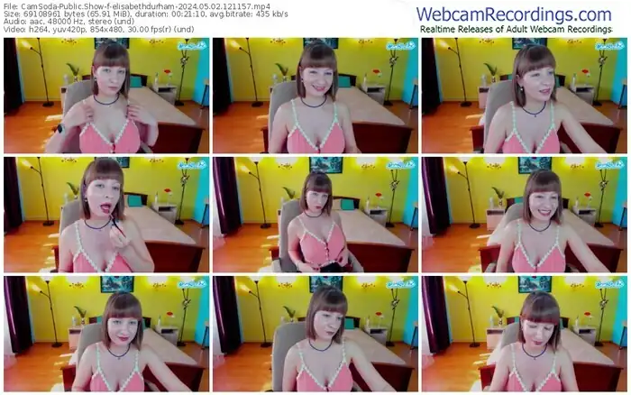 There are a total of 208 recordings (91 hours) of elisabethdurham from CamSoda available below.