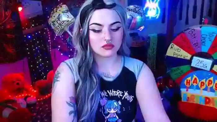 She is 41 years old, and the average age of models on Streamate is 30—making her one of the older models. Her height is 5'8, and her weight is 165 lbs. She identifies her ethnicity as white. She has a b cup size breasts, hairy pubic hair on a curvaceous body with hazel eyes and dyed hair.Her body art includes tattoos, piercings.
