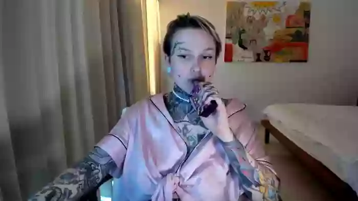 She is 36 years old, and the average age of models on Streamate is 30—making her one of the older models. Her height is 5'5, and her weight is 128 lbs. She identifies her ethnicity as white. She has a c cup size breasts, trimmed pubic hair on an average body with blue eyes and blond hair.Her body art includes tattoos, piercings.