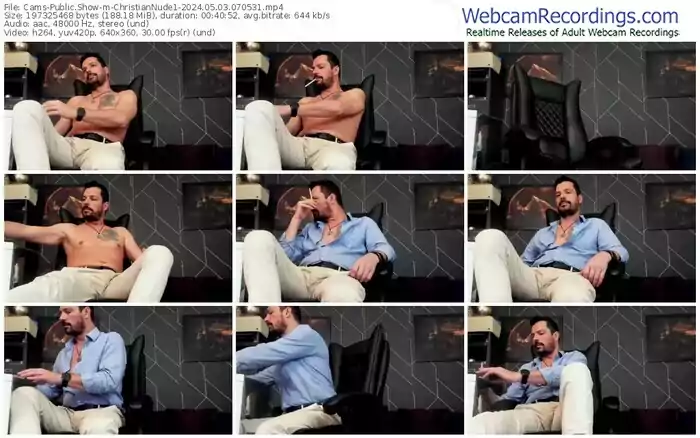There are a total of 1,476 recordings (809 hours) of ChristianNude1 from Cams available below.