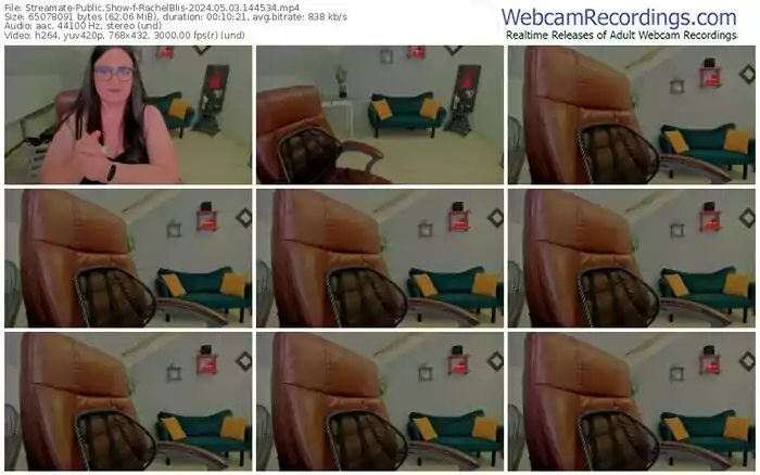 There are a total of 2,378 recordings (1,277 hours) of RachelBlis from Streamate available below.