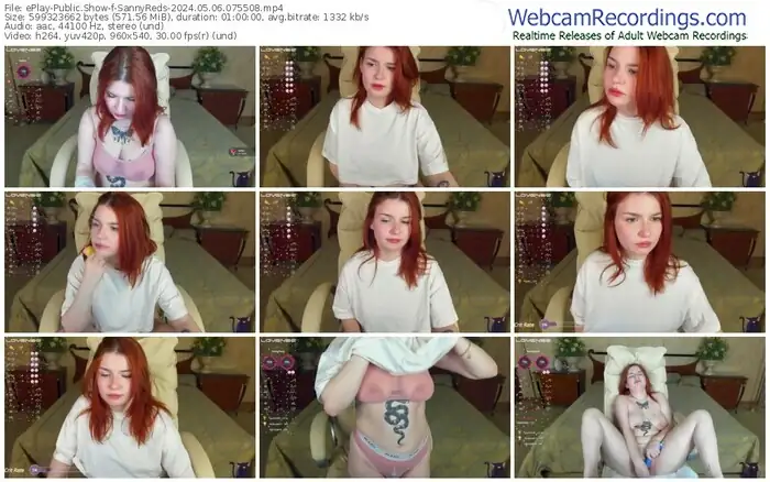 There are a total of 181 recordings (132 hours) of SannyReds from ePlay, CamSoda and Stripchat available below.