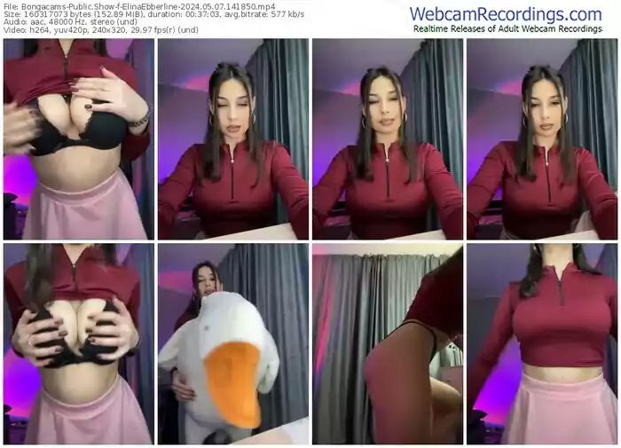 There are a total of 12 recordings (4 hours) of ElinaEbberline from Bongacams available below.
