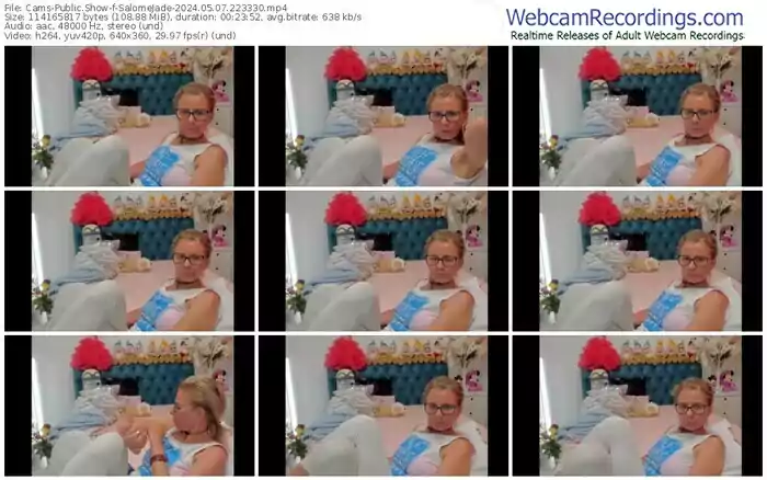There are a total of 1,221 recordings (728 hours) of SalomeJade from Cams available below.