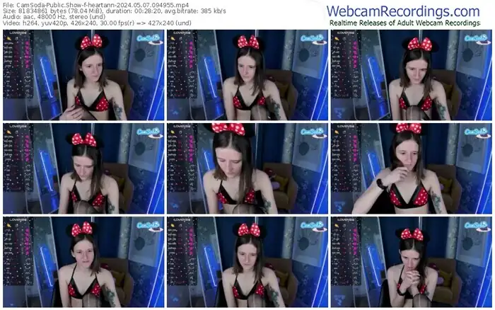 There are a total of 203 recordings (112 hours) of heartann from CamSoda and Chaturbate available below.