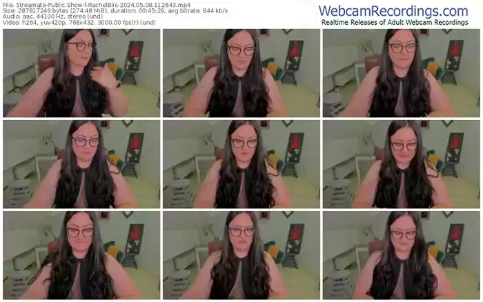 There are a total of 2,378 recordings (1,277 hours) of RachelBlis from Streamate available below.