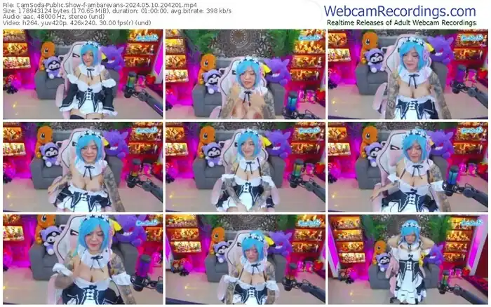 There are a total of 935 recordings (744 hours) of ambarevans from CamSoda, MFC, Bongacams, and Stripchat available below.