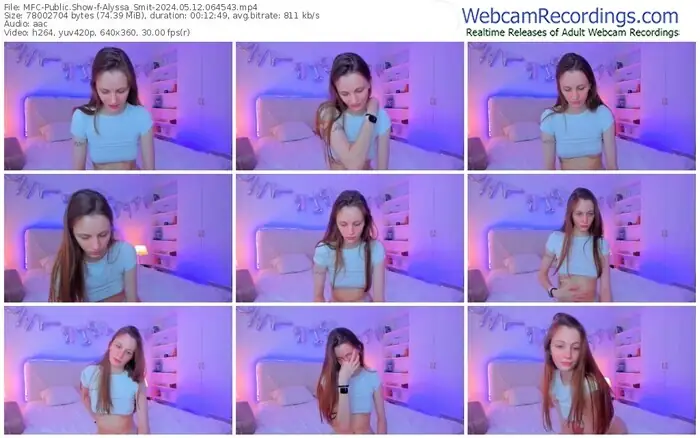 There are a total of 2,618 recordings (1,653 hours) of Alyssa_Smit from MyFreeCams, MV_Live and Stripchat available below.