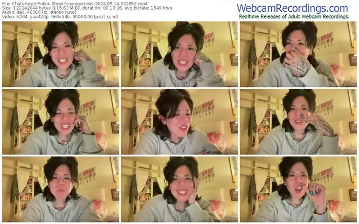 There are a total of 21 recordings (9 hours) of xoxogenesis from Chaturbate available below.