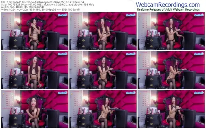 There are a total of 1,002 recordings (545 hours) of salomepaez1 from CamSoda available below.