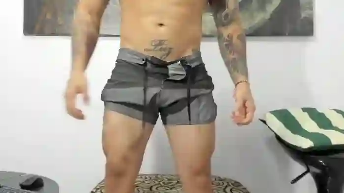 His birthday is July 10th 1998 making him 27 years old, and the average age of models on Flirt4Free is 25—making him one of the older models. His height is 175cm, and his weight is 77kg. He identifies his ethnicity as hispanic. He has a trimmed pubic hair, athletic body with brown eyes and short black hair.His body art includes piercings, tattoo(s).