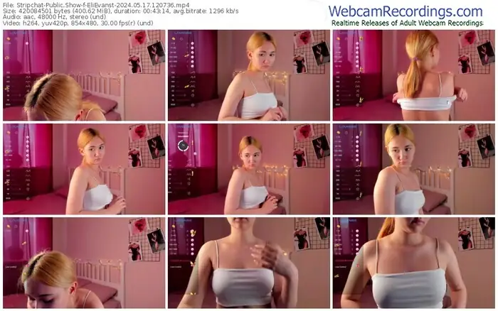 There are a total of 36 recordings (23 hours) of EliEvanst from Stripchat available below.