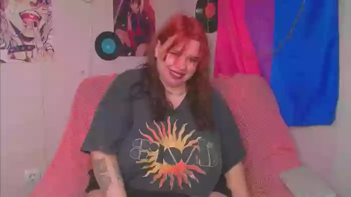 She is 19 years old, and the average age of models on Streamate is 30—making her one of the younger models. Her height is 5'6, and her weight is 219 lbs. She identifies her ethnicity as white. She has a h cup size breasts, trimmed pubic hair on a bbw body with green eyes and red hair.Her body art includes tattoos, piercings.