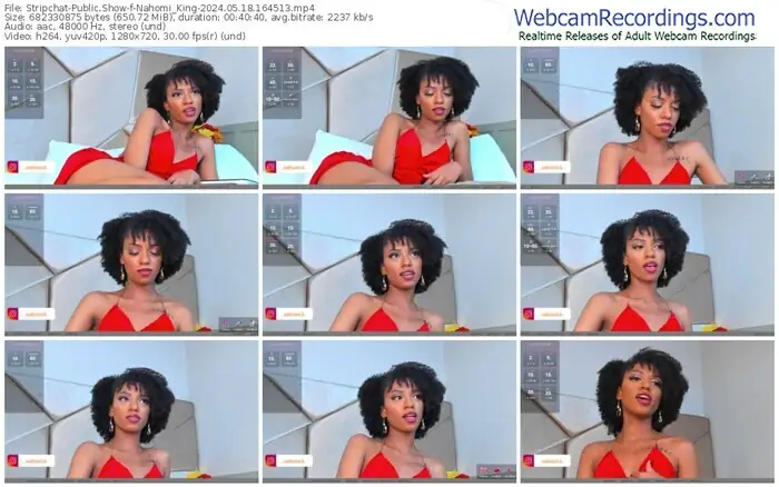 There are a total of 502 recordings (265 hours) of Nahomi_King from Stripchat available below.
