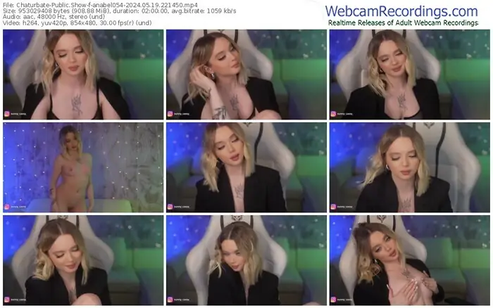There are a total of 8,988 recordings (8,103 hours) of anabel054 from Chaturbate and Dreamcam available below.