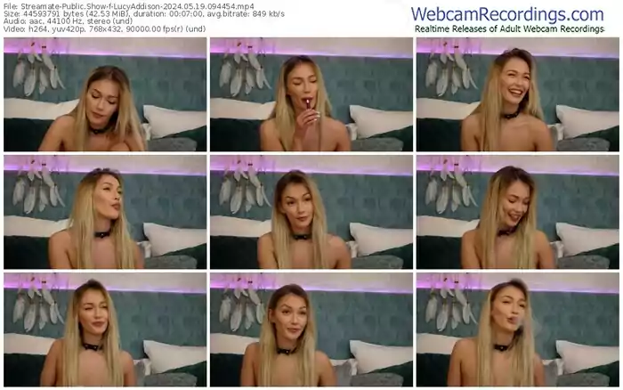 There are a total of 1,702 recordings (637 hours) of LucyAddison from Streamate, MFC, Stripchat, and Chaturbate available below.