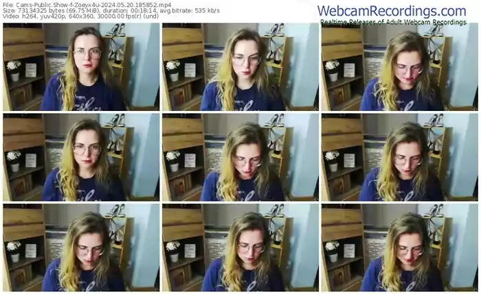 There are a total of 210 recordings (121 hours) of Zoeyx4u from Cams available below.
