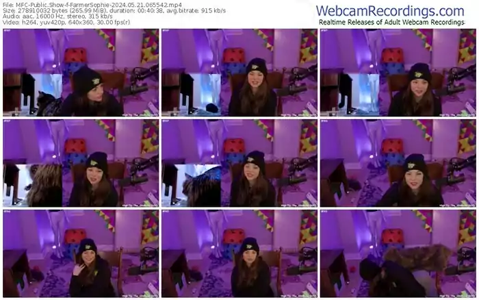 There are a total of 124 recordings (80 hours) of FarmerSophie from MyFreeCams available below.