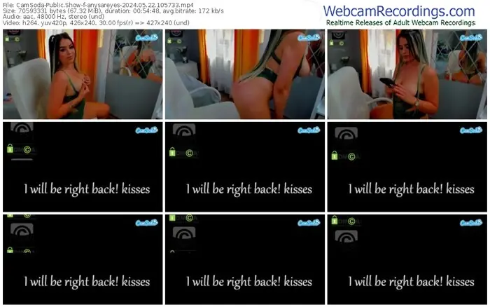 There are a total of 122 recordings (67 hours) of anysareyes from CamSoda available below.