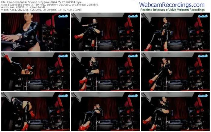 There are a total of 382 recordings (289 hours) of puffyllove from CamSoda and Bongacams available below.