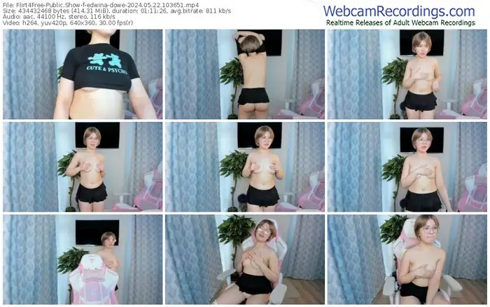 There are a total of 153 recordings (73 hours) of edwina-dowe from Flirt4Free available below.