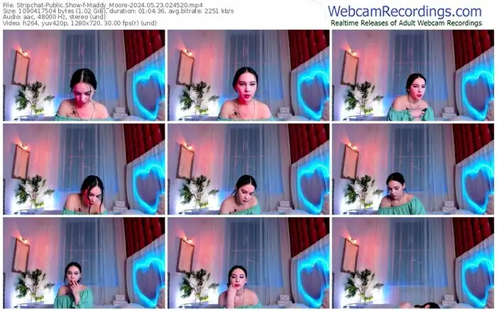 There are a total of 7 recordings (5 hours) of Maddy_Moore from Stripchat and Dreamcam available below.