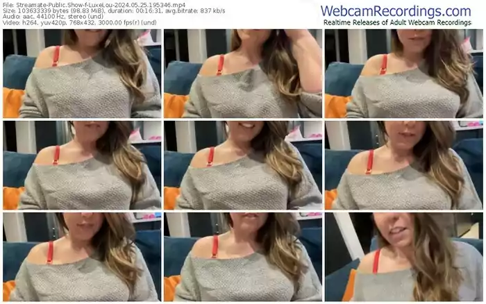 There are a total of 535 recordings (125 hours) of LuxeLou from Streamate available below.