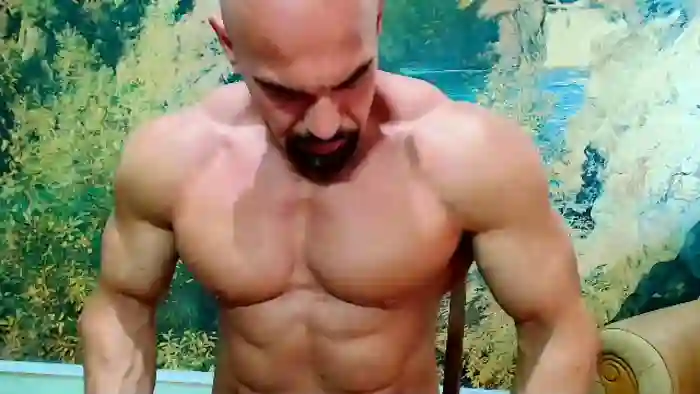 His birthday is May 8th 1983 making him 42 years old, and the average age of models on Flirt4Free is 25—making him one of the older models. His height is 188cm, and his weight is 110kg. He identifies his ethnicity as caucasian. He has a shaved pubic hair, muscular body with green eyes and bald bald hair.
