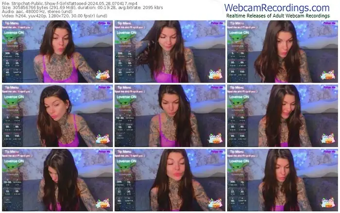 There are a total of 153 recordings (97 hours) of GirlsTattooed from Stripchat available below.
